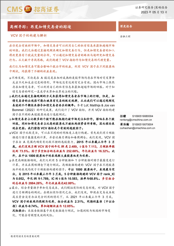 【海通证券】【20230513】VCV因子的构建与解析:高频寻踪:再觅知情交易者的踪迹-21页