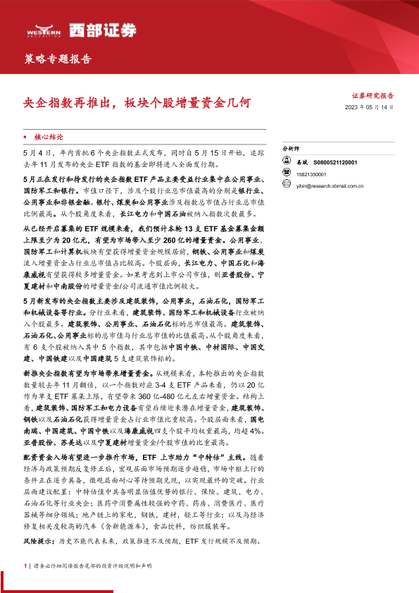 【西部证券】【20230514】策略专题报告:央企指数再推出,板块个股增量资金几何-20页