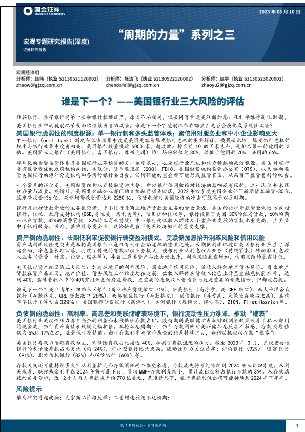 【国金证券】【20230510】“周期的力量”系列之三:美国银行业三大风险评估,谁是下一个?-23页