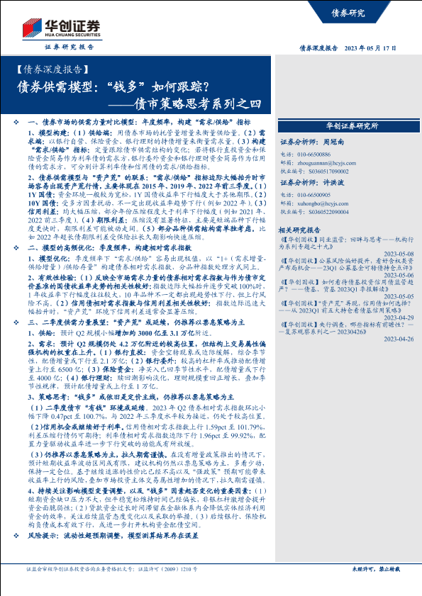 【华创证券】【20230517】债市策略思考系列之四:债券供需模型,“钱多”如何跟踪?-19页