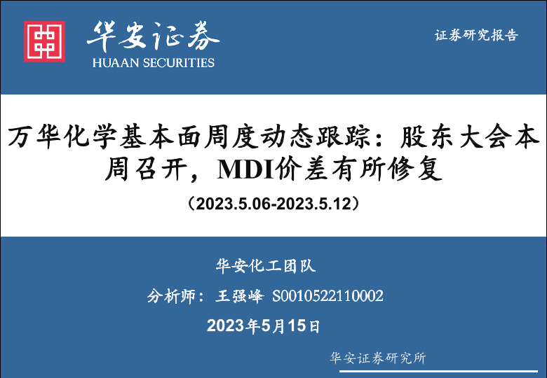 【华安证券】【20230515】万华化学基本面周度动态跟踪:股东大会本周召开,MDI价差有所修复-33页
