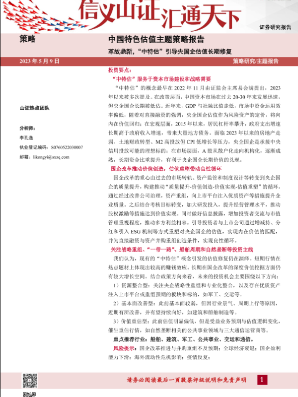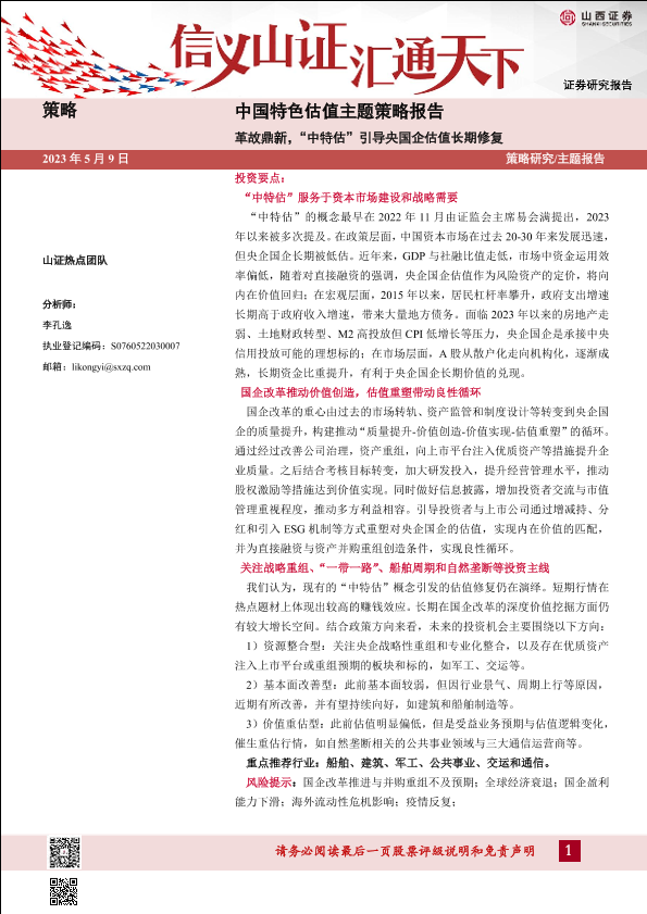 【山西证券】【20230509】中国特色估值主题策略报告:革故鼎新,“中特估”引导央国企估值长期修复-40页