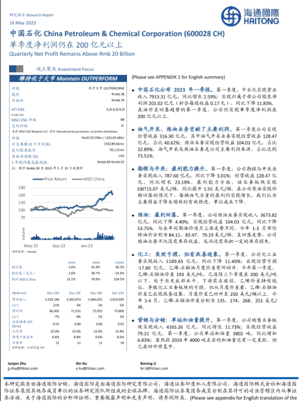 【海通国际】【20230515】中国石化(600028)单季度净利润仍在200亿元以上-17页
