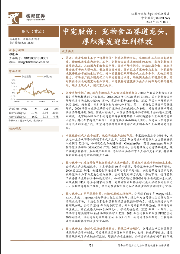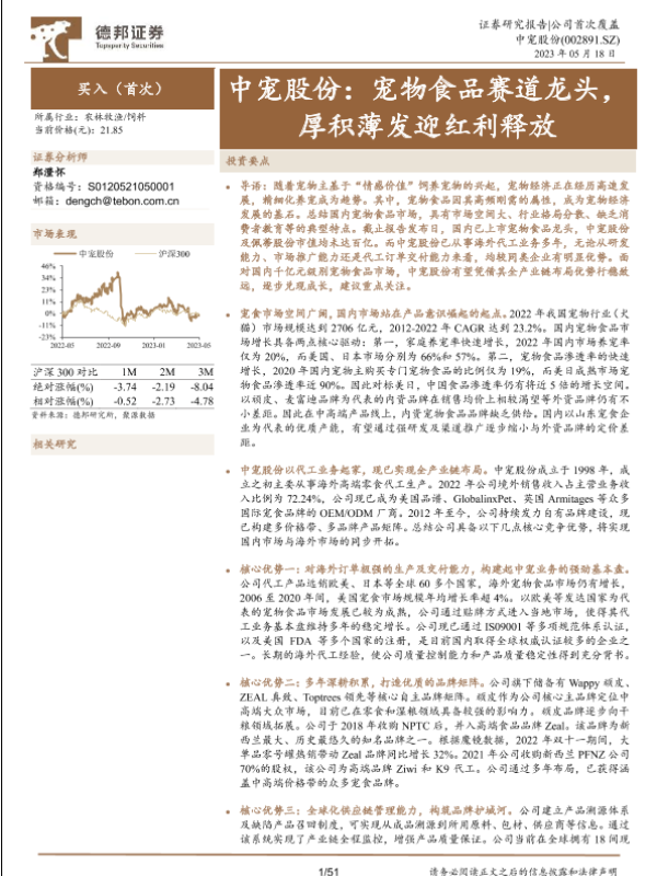 【德邦证券】【20230518】中宠股份(002891):宠物食品赛道龙头,厚积薄发迎红利释放-32页