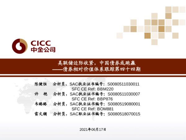 【中金公司】【20210617】美联储边际收紧,中国债券或跑赢-21页