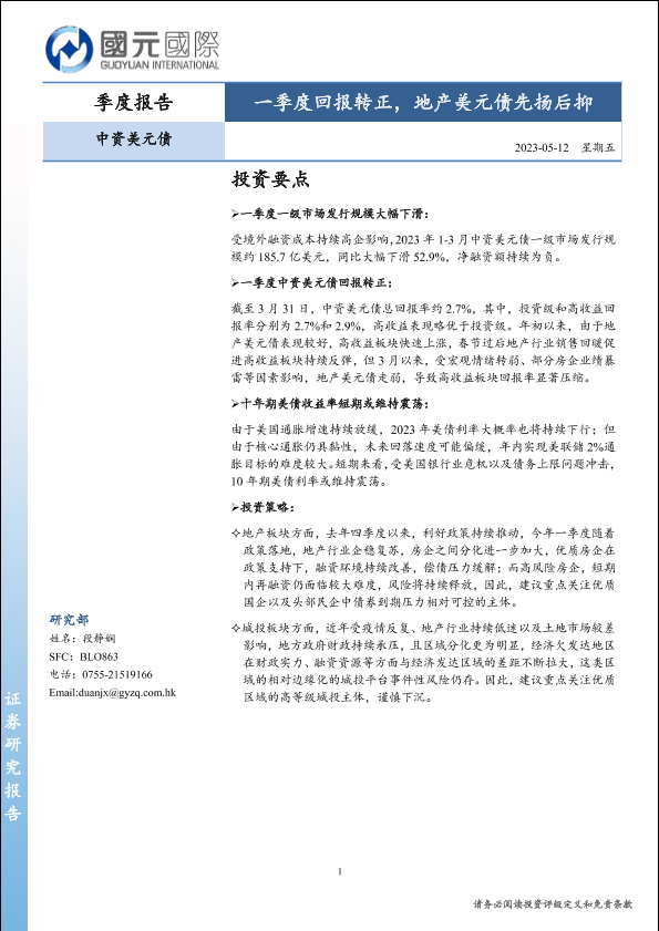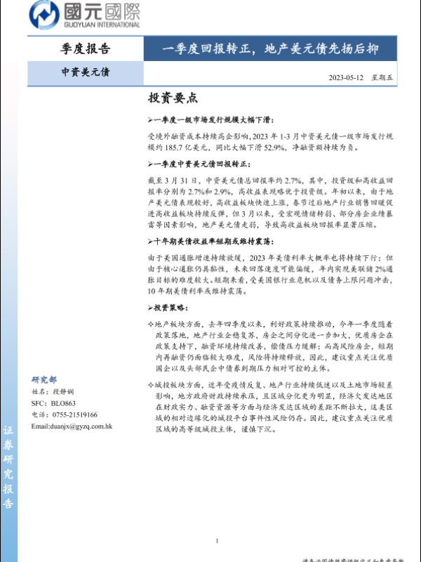 【国元国际】【20230512】中资美元债季度报告:一季度回报转正,地产美元债先扬后抑-19页