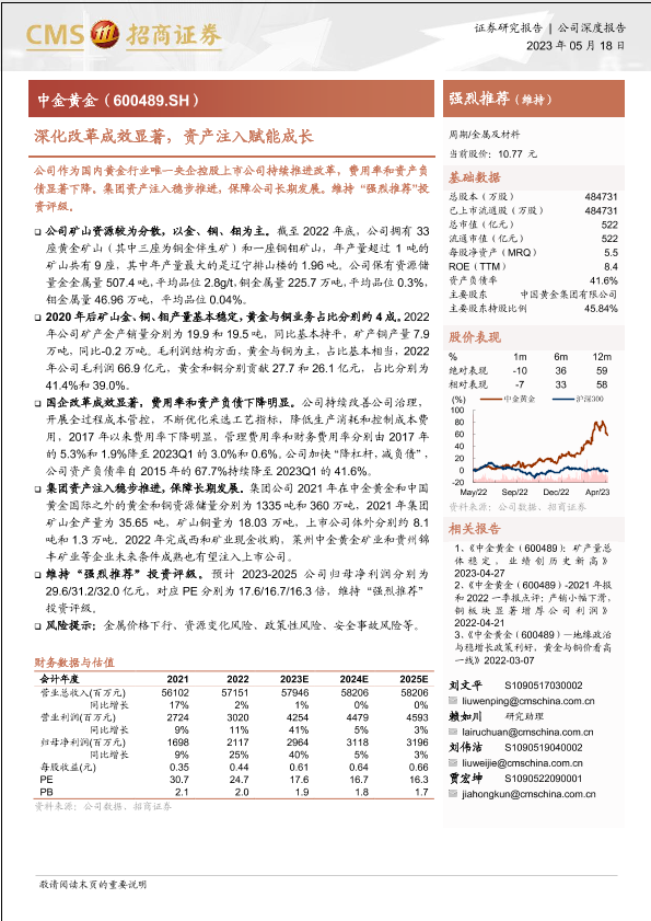 【海通证券】【20230518】中金黄金(600489)深化改革成效显著,资产注入赋能成长-18页