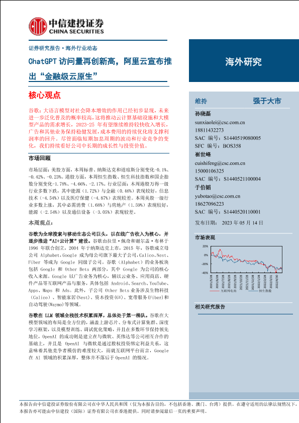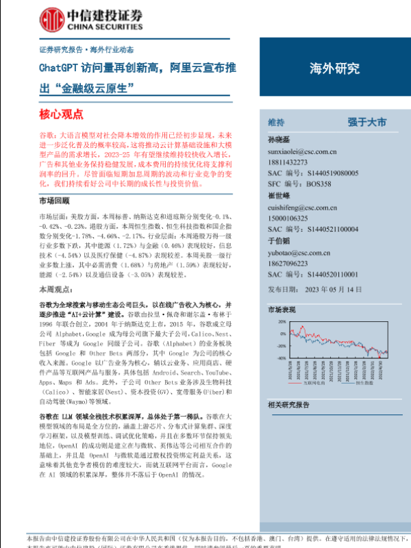 【中信建投证券】【20230514】互联网电商行业:ChatGPT访问量再创新高,阿里云宣布推出“金融级云原生”-21页