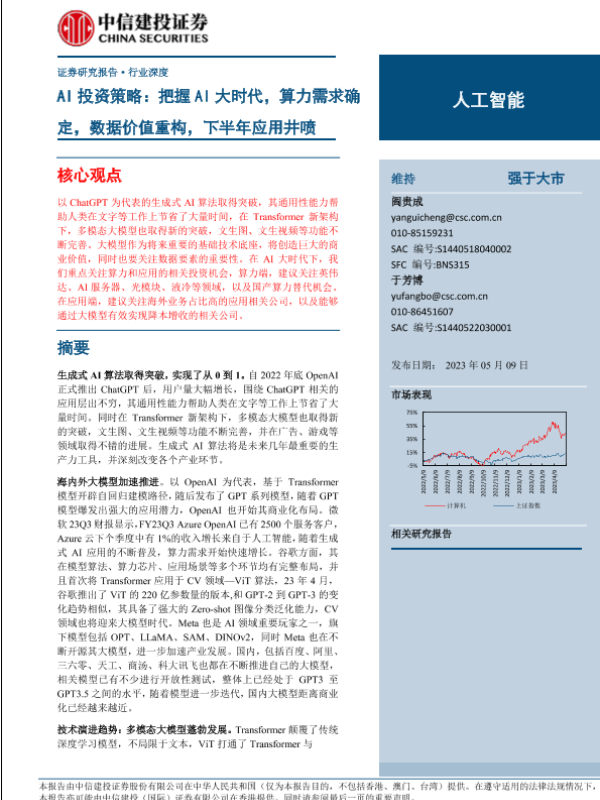 【中信建投证券】【20230509】人工智能行业AI投资策略:把握AI大时代,算力需求确定,数据价值重构,下半年应用井喷-74页