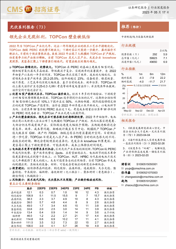 【海通证券】【20230517】光伏系列报告(73):领先企业兑现红利,TOPCon壁垒被低估-16页