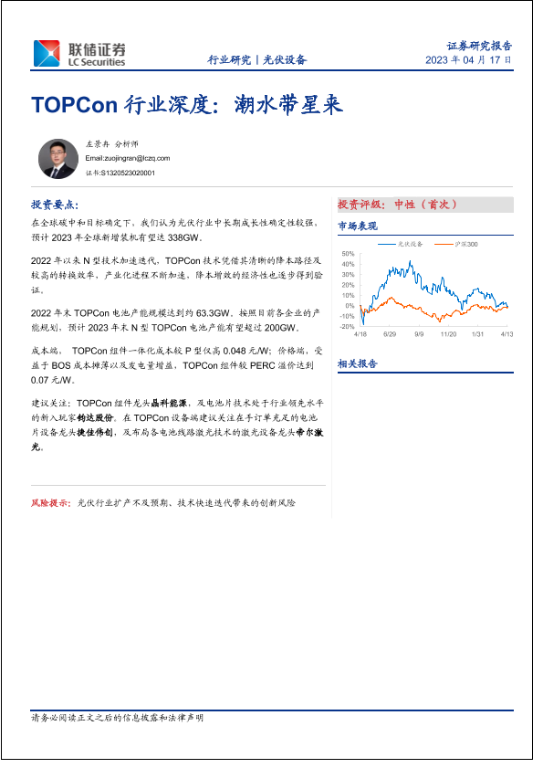 【联储证券】【20230417】光伏设备行业:TOPCon行业深度,潮水带星来-19页