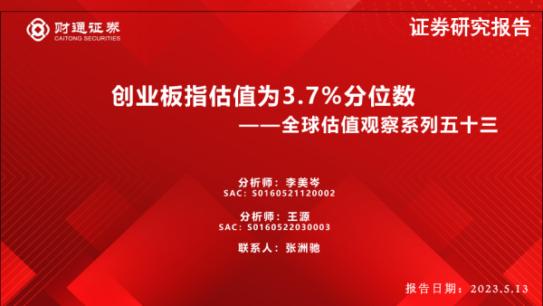 【财通证券】【20230513】全球估值观察系列五十三:创业板指估值为3.7%分位数-29页