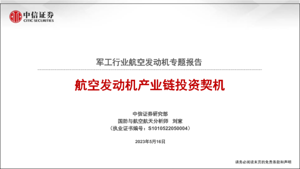 【中信证券】【20230516】军工行业航空发动机专题报告:航空发动机产业链投资契机-23页