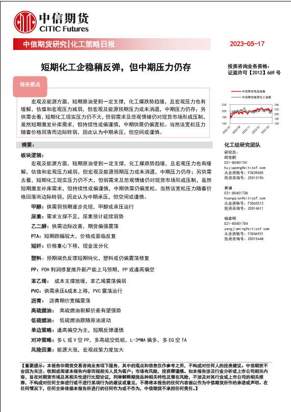 【中信期货】【20230517】化工策略日报:短期化工企稳稍反弹,但中期压力仍存-20页