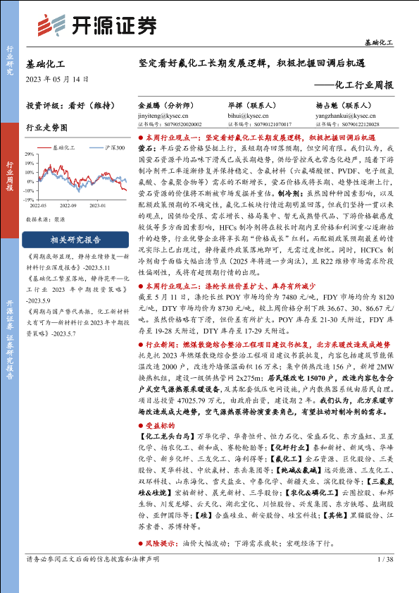 【开源证券】【20230514】化工行业周报:坚定看好氟化工长期发展逻辑,积极把握回调后机遇-38页