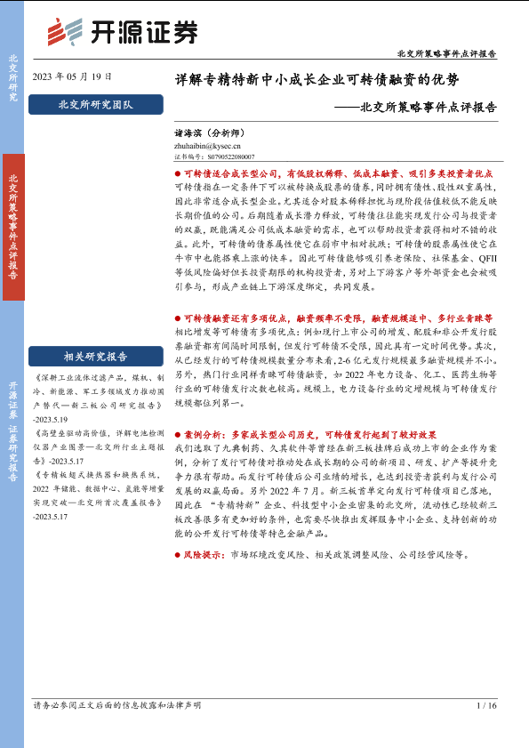 【开源证券】【20230519】详解专精特新中小成长企业可转债融资的优势-16页