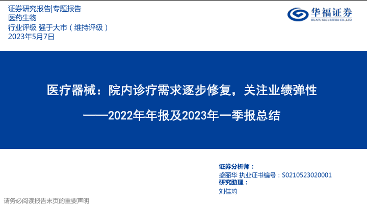 【华福证券】【20230507】医药生物行业2022年年报及2023年一季报总结:医疗器械,院内诊疗需求逐步修复,关注业绩弹性-37页
