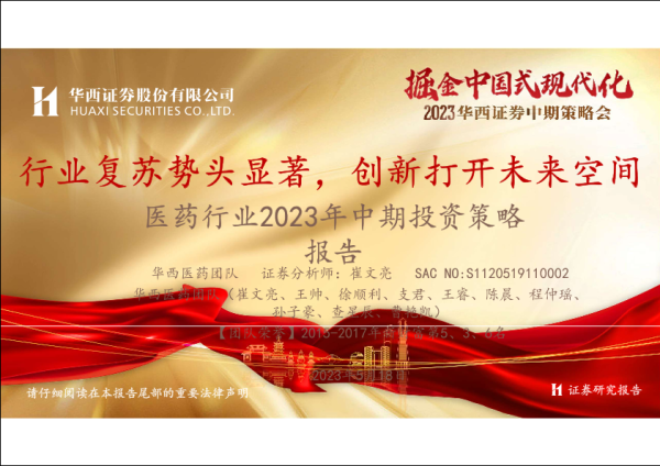 【华西证券】【20230518】医药行业2023年中期投资策略报告:行业复苏势头显著,创新打开未来空间-115页