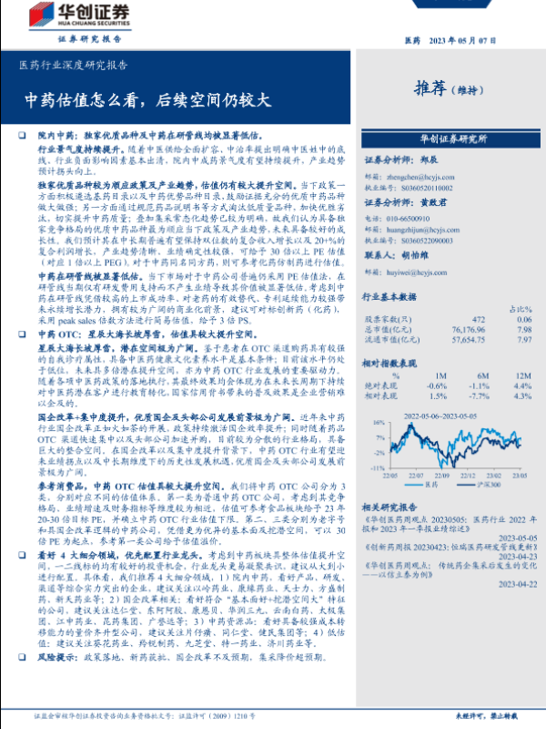 【华创证券】【20230507】医药行业深度研究报告:中药估值怎么看,后续空间仍较大-20页