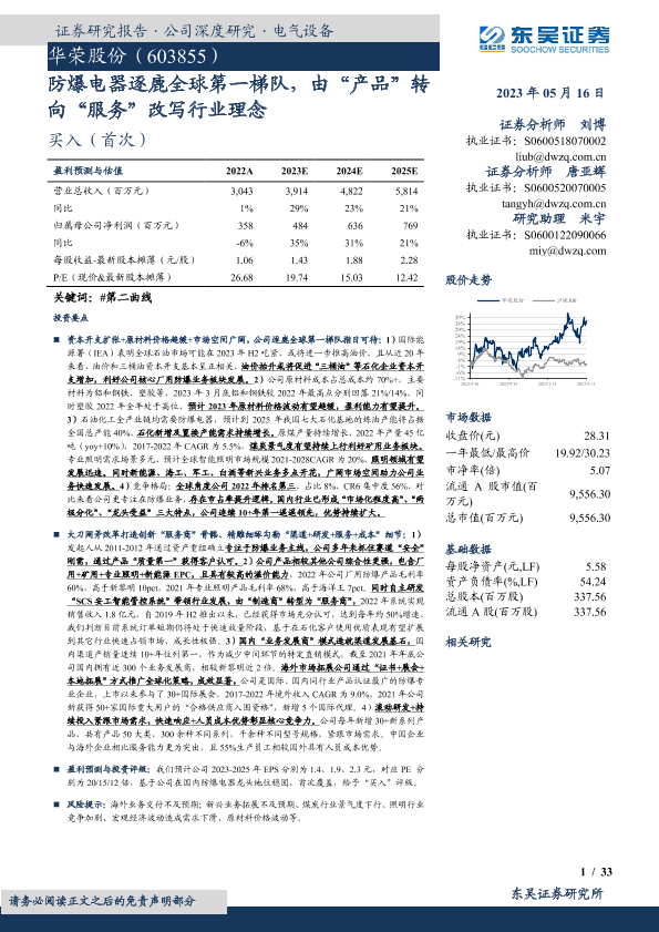 【东吴证券】【20230516】华荣股份(603855)防爆电器逐鹿全球第一梯队,由“产品”转向“服务”改写行业理念-33页
