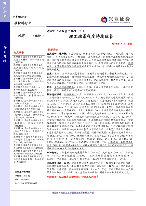 【兴业证券】【20230517】原材料5月投资半月报(下):竣工端景气度持续改善-25页