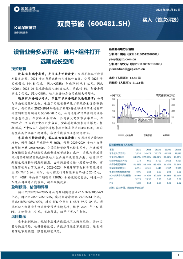 【国金证券】【20230515】双良节能(600481)设备业务多点开花,硅片+组件打开远期成长空间-34页