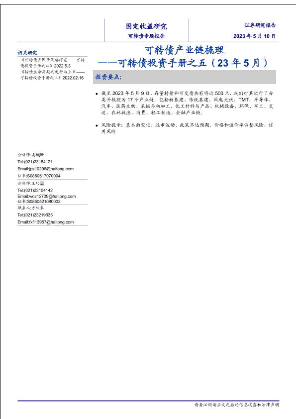 【海通证券】【20230510】可转债产业链梳理——可转债投资手册之五(23年5月)-26页