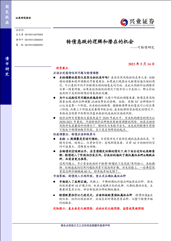 【兴业证券】【20230514】转债急跌的逻辑和潜在的机会——可转债研究-21页