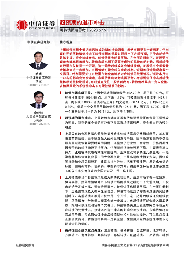 【中信证券】【20230515】可转债策略思考:超预期的退市冲击-22页