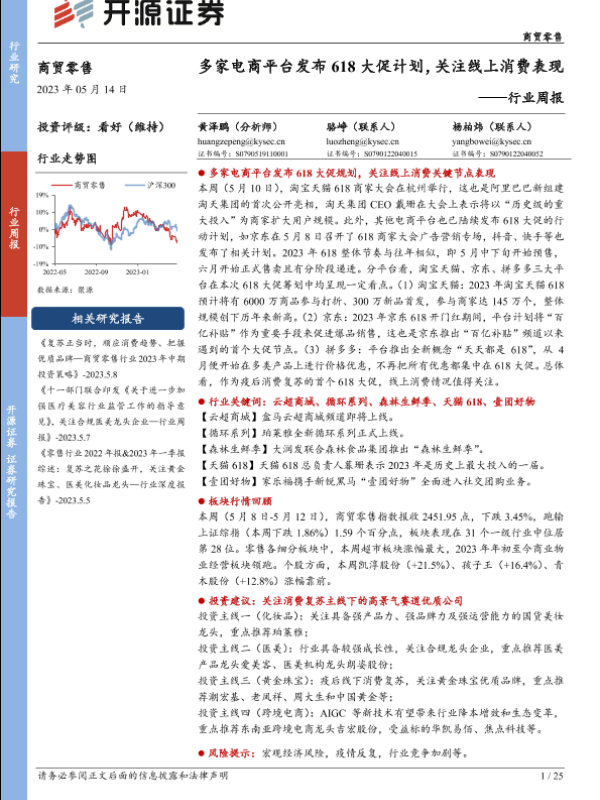【开源证券】【20230514】商贸零售行业周报:多家电商平台发布618大促计划,关注线上消费表现-25页