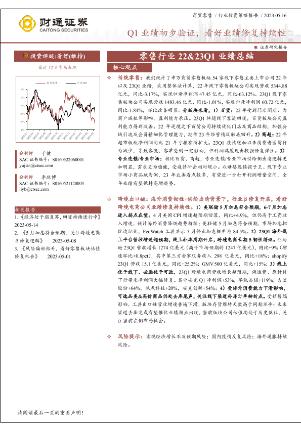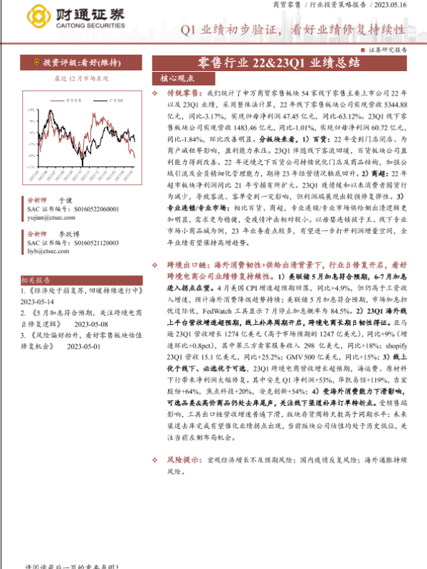 【财通证券】【20230516】商贸零售行业:Q1业绩初步验证,看好业绩修复持续性-19页