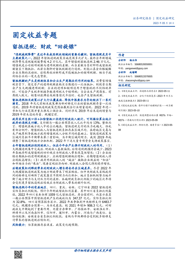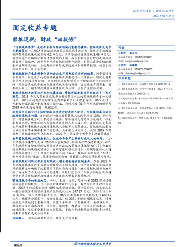 【国盛证券】【20230514】固定收益专题:留抵退税,财政“回旋镖”-21页