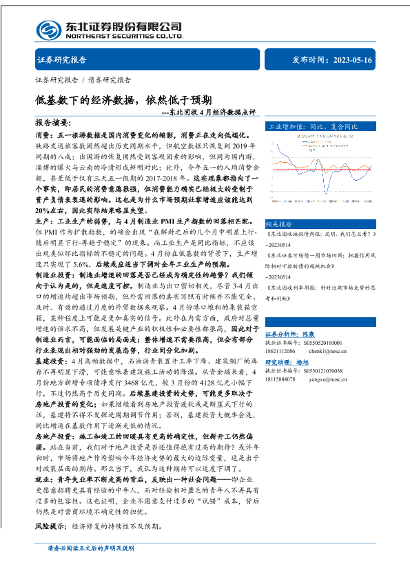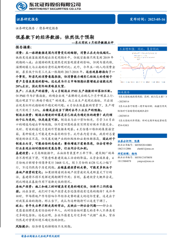 【东北证券】【20230516】固收4月经济数据点评:低基数下的经济数据,依然低于预期-17页