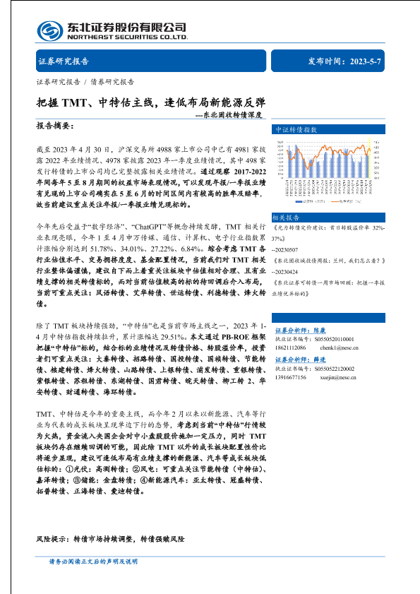 【东北证券】【20230507】固收转债深度:把握TMT、中特估主线,逢低布局新能源反弹-38页
