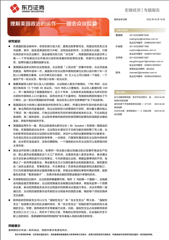【东方证券】【20230516】国会众议院篇:理解美国政治的运作-15页