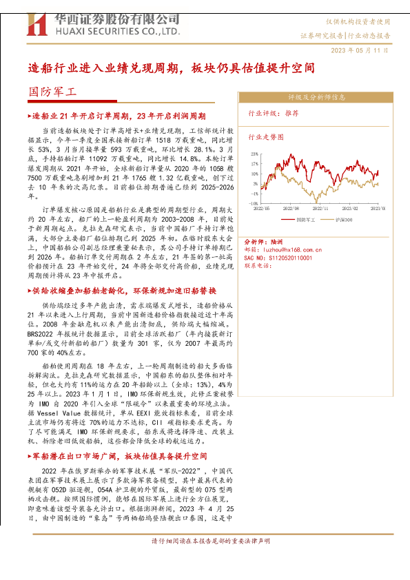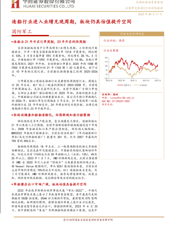 【华西证券】【20230511】国防军工行业:造船行业进入业绩兑现周期,板块仍具估值提升空间-22页