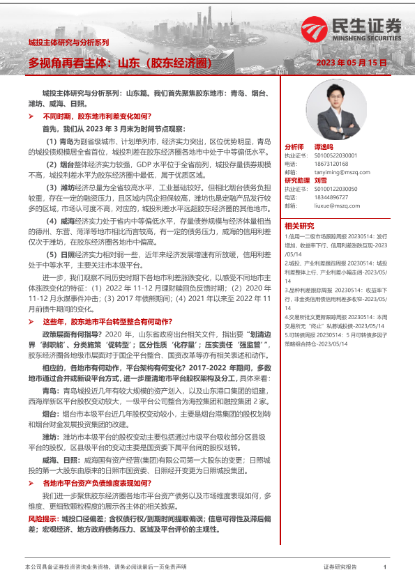 【民生证券】【20230515】城投主体研究与分析系列:多视角再看主体,山东(胶东经济圈)-29页