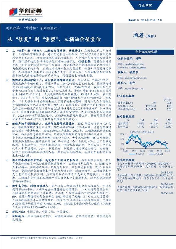 【华创证券】【20230512】基础化工行业国企改革+“中特估”系列报告之一:从“修复”到“重塑”,三桶油价值重估-37页