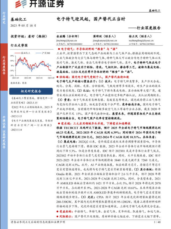 【开源证券】【20230518】基础化工行业深度报告:电子特气迎风起,国产替代正当时-40页