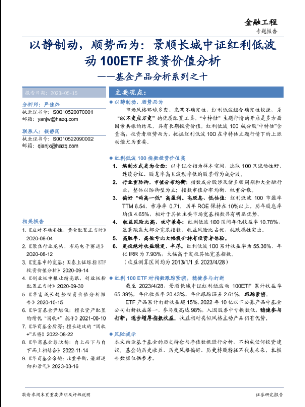 【华安证券】【20230515】以静制动,顺势而为:景顺长城中证红利低波动100ETF投资价值分析-23页