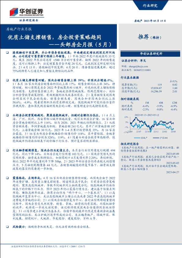 【华创证券】【20230515】头部房企月报(5月):优质土储支撑销售,房企投资策略趋同-18页