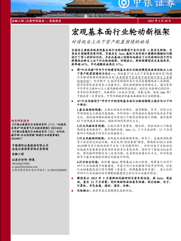 【中银证券】【20230518】宏观基本面行业轮动新框架:对传统自上而下资产配置困境的破局-25页