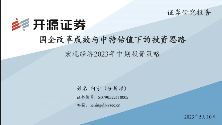 【开源证券】【20230510】宏观经济2023年中期投资策略:国企改革成效与中特估值下的投资思路-52页