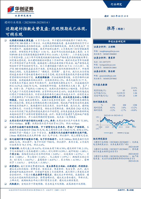 【华创证券】【20230515】建材行业周报:近期建材指数走势复盘:悲观预期或已体现,可稍乐观-20页