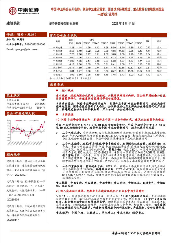 【中泰证券】【20230514】建筑行业周报:中国-中亚峰会召开在即、聚焦中亚建设需求,国企改革持续推进、重点推荐低估绩优央国企-34页
