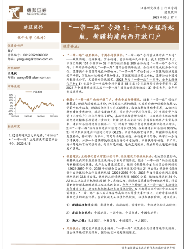 【德邦证券】【20230517】建筑装饰“一带一路”专题1:十年征程再起航,新疆构建向西开放门户-26页