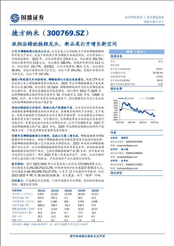 【国盛证券】【20230517】德方纳米(300769)液相法铸就铁锂龙头,新品类打开增长新空间-32页