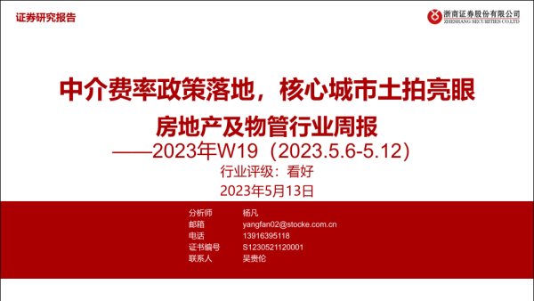 【浙商证券】【20230513】房地产及物管行业周报2023年W19:中介费率政策落地,核心城市土拍亮眼-28页