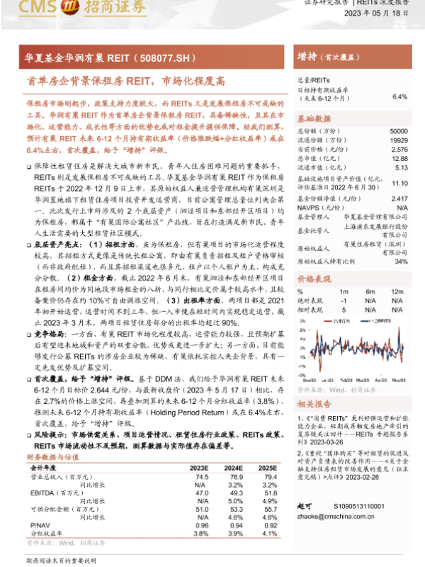REITs REITS 保障性租赁住房 华夏基金 华润有巢