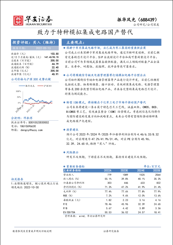 【华安证券】【20230513】振华风光(688439)致力于特种模拟集成电路国产替代-40页